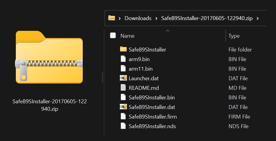 The Windows application "WinRAR" is specifically known to cause compatibility issues with the 3DS, particularly with custom firmware installation exploits. If you are on a Windows computer, you should use either the default File Explorer or 7-zip to extract files.
